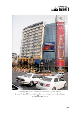 ประวัติศาสตร์จานเดียว นครย่างกุ้ง แม้จะกลายเป็นอดีตเมืองหลวง แต่ยังคงความเจริญไว้อย่างครบถ้วน โรงแรมย่างกุ้ง เป็นหนึ่งในโรงแรมชั้นนำาที่ทันสมัยที่สุดในเมือง ต้อนรับการเป็นเจ้าซีเกมส์ ๒๕๕๖ (ภาพโดยผู้เขียน พ.ศ. ๒๕๕๖) ๑๙๓