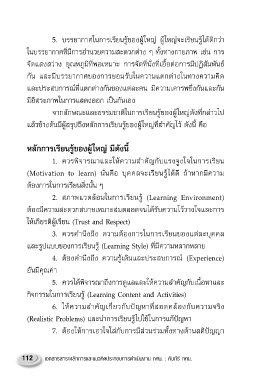 แล้วข้างต้นมีผู้สรุปถึงหลักการเรียนรู้ของผู้ใหญ่ที่สำคัญไว้ ดังนี้ คือ