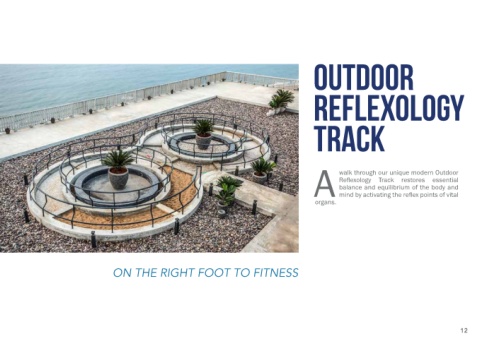 OUTDOOR REFLEXOLOGY TRACK walk through our unique modern Outdoor Reflexology Track restores essential balance and equilibrium of the body and A mind by activating the reflex points of vital organs. ON THE RIGHT FOOT TO FITNESS 12