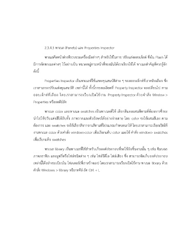 2.3.4.5 พำเนล (Panels) และ Properties Inspector