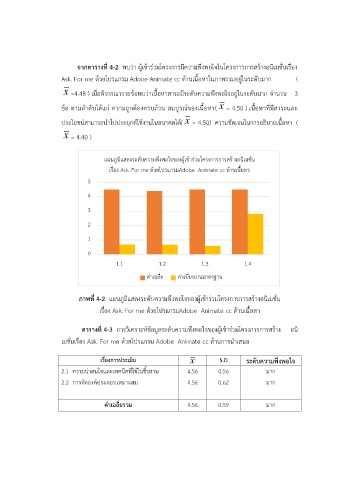 จากตารางที่ 4-2  พบว่ำ ผู้เข้ำร่วมโครงกำรมีควำมพึงพอใจในโครงกำรกำรสร้ำงอนิเมชั่นเรื่อง