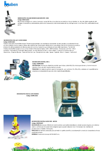 DESCRIPCIÓN:Microscopio MS333 de material plástico con bordes redondeados y terminaciones de goma y en distintos