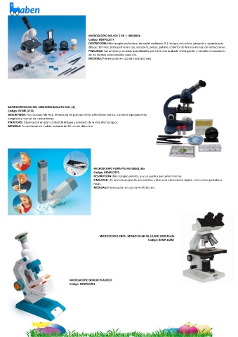 DESCRIPCIÓN: Microscopio MS-921. Monocular de gran aumento 100x 1200x con luz. Contiene equipamiento