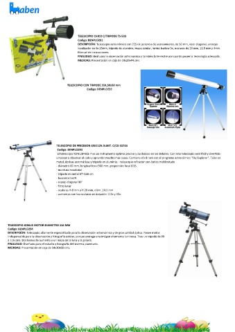 indispensable para la observación y fotografía estelar, porque entrega una imágen altamente luminosa. Trae un trípode de 69