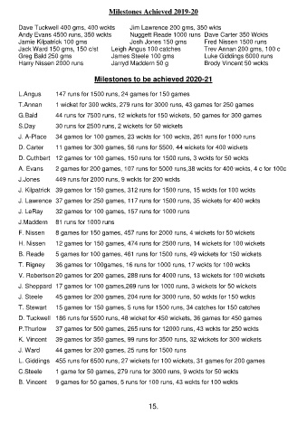 T. Stewart 15 games for 150 games, 5 runs for 1500 runs, 34 catches for 150 catches