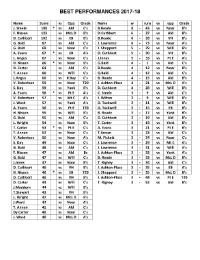 Name Score vs Opp Grade Name w runs vs opp Grade