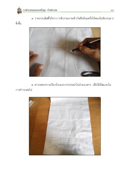 การท ากรงของนกกรงหัวจุก : บ้านท่าแรด ๔๑ 7. วาดลายเส้นที่ได้จากการพับกระดาษเข้ากันอีกด้านหนึ่งให้คมเข้มชัดเจนมาก ยิ่งขึ้น 8. ตรวจสอบความเรียบร้อยแบบกรงก่อนน าไปถ่ายเอกสาร เพื่อใช้เป็นแบบใน การท ากรงต่อไป