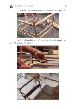 การท ากรงของนกกรงหัวจุก : บ้านท่าแรด ๕๑ 7. น าคานกลาง มาประกอบเข้ากับกรงทั้ง 4 ด้าน โดยให้สูงจากคานล่างประมาณ 3 นิ้ว 8. ใส่ซี่กรงที่ได้เตรียมไว้ให้ครบทุกด้าน โดยติดซี่กรงด้วยกาวร้อน ยกเว้นซี่กรงที่เป็นประตู เปิด - ปิดกรง ไม่ต้องหยอดกาวบริเวณคานบน