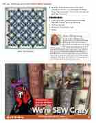 fashion design. It wasn’t until 2000 that she dove into quilting with wedding quilts, baby quilts, quilts given in love, and quilts to try new techniques. Her first love is piecing, (some very tiny), figuring out how best to con- struct a block, and color placement which led her to de- signing her own quilts. She does her own quilting with a love for free motion feathers and ruler work.