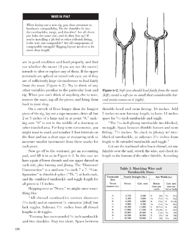 figuration” is thimbled splice (“Th.”) at both ends, Turnbuckle Sizes