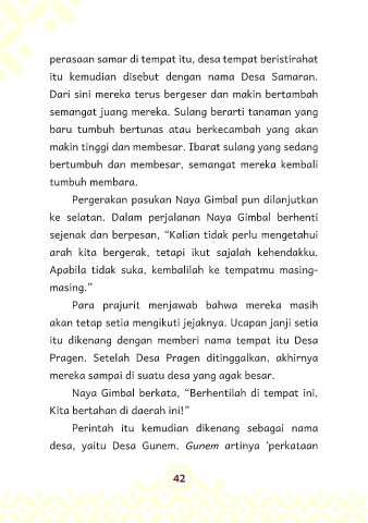 ke selatan. Dalam perjalanan Naya Gimbal berhenti