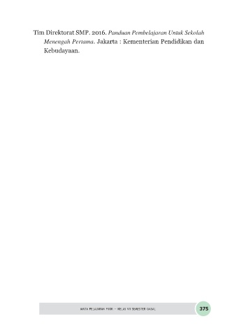Tim Direktorat SMP. 2016. Panduan Pembelajaran Untuk Sekolah Menengah Pertama. Jakarta : Kementerian Pendidikan dan Kebudayaan. MATA PELAJARAN PJOK — KELAS VII SEMESTER GASAL 375