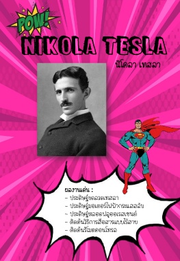 Nikola Tesla นิโคลา เทสลา ผลงานเด่น : – ประดิษฐ์ขดลวดเทสลา – ประดิษฐ์มอเตอร์ไฟฟ้ากระแสสลับ – ประดิษฐ์หลอดฟลูออเรสเซนต์ – คิดค้นวิธีการสื่อสารแบบไร้สาย – คิดค้นรีโมตคอนโทรล