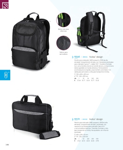 para ordenador hasta 17’’ y tablet 10.5’’. 3 bolsillos frontales