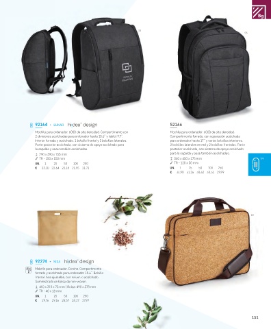 Interior forrado y acolchado. 1 bolsillo frontal y 2 bolsillos laterales. para ordenador hasta 17’’ y varios bolsillos interiores.