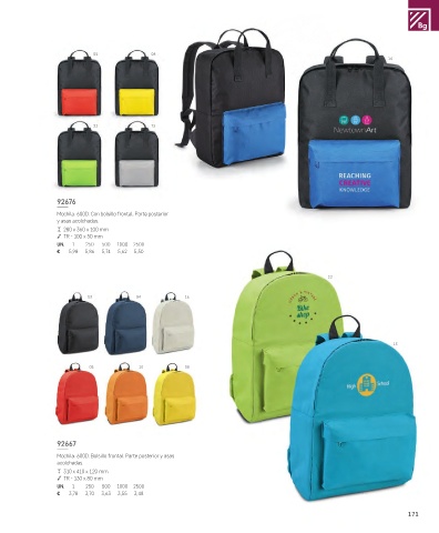 Mochila. 600D. Bolsillo frontal. Parte posterior y asas