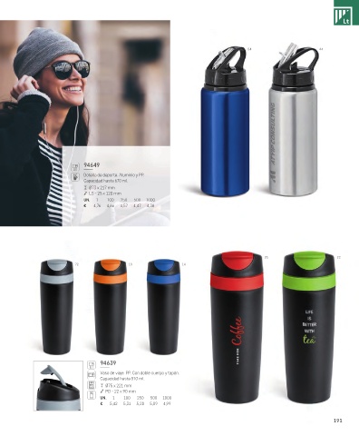 Vaso de viaje. PP. Con doble cuerpo y tapón.