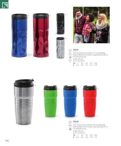 Vaso de viaje. Acero inoxidable y PP. Con pared doble,