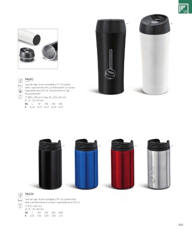 Vaso de viaje. Acero inoxidable y PP. Con pared