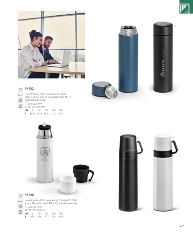 Botella termo. Acero inoxidable y PP. Con pared doble
