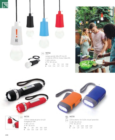 Linterna. Acabado de goma. Con LED Linterna dinamo. Con 3 LEDs. Incluye 3 pilas AG10.