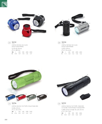 Linterna. Aluminio. Con 9 LEDs. Incluye 3 pilas AAA. Linterna. Aluminio. Con 9 LEDs. 3 pilas AAA