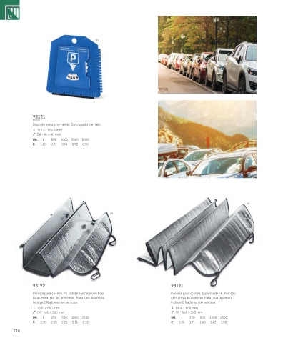 de aluminio por las dos caras. Para luna delantera. con 1 hoja de aluminio. Para luna delantera.