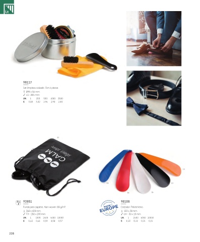 Funda para zapatos. Non-woven: 80 g/m². Calzador. Poliestireno.