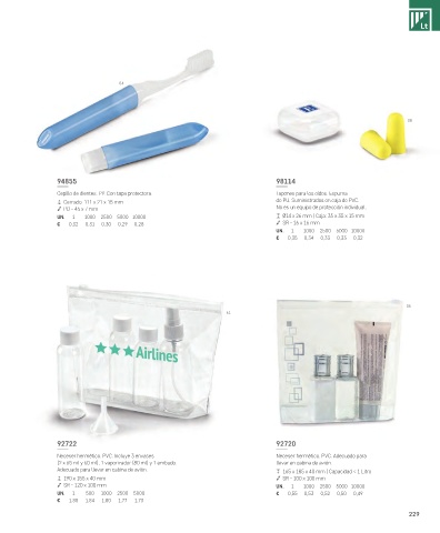 Cepillo de dientes. PP. Con tapa protectora. Tapones para los oídos. Espuma