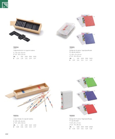 Juego mikado. En caja de madera. Baraja de 54 cartas. Papel plastiµcado.