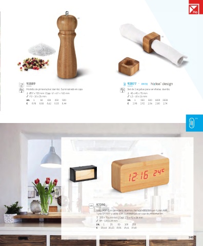 Molinillo de pimienta/sal. Bambú. Suministrado en caja. Set de 2 argollas para servilletas. Bambú.