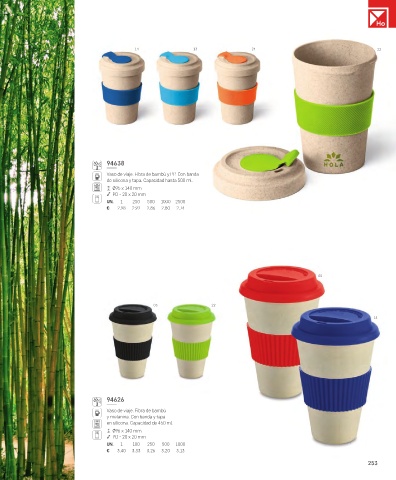 Vaso de viaje. Fibra de bambú y PP. Con banda