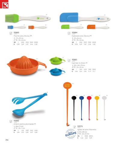 Pincel de cocina. Silicona y PP. Espátula de cocina. Silicona y PP.