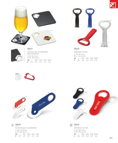 Posavasos. ABS. Con abrebotellas. Abrebotellas. Aluminio.