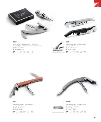 Sacacorchos. Madera. Con abrebotellas Sacacorchos. Metal. Con abrebotellas