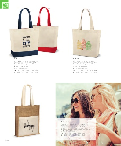 Con bolsillo interior y asas de 65 cm. Con bolsillo interior y asas de 65 cm.