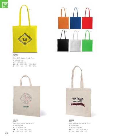 Bolsa. 100% algodón. Asas de 30 cm. Bolsa. 100% algodón. Asas de 75 cm.