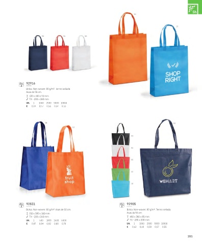 Bolsa. Non-woven: 80 g/m². Asas de 50 cm. Bolsa. Non-woven: 80 g/m². Termo sellada.