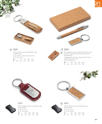 de presentación. y aluminio. Llavero de corcho y metal. En estuche