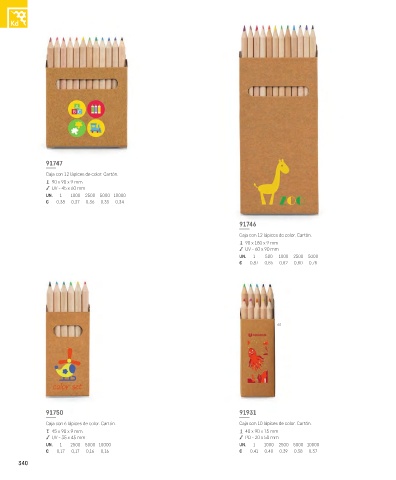 Caja con 6 lápices de color. Cartón. Caja con 10 lápices de color. Cartón.