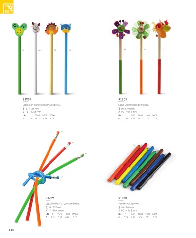 Lápiz exible. Con goma de borrar. Set de 8 rotuladores.