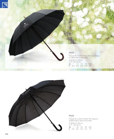 Paraguas de 16 varillas. Pongee 190T. Cabo y mango
