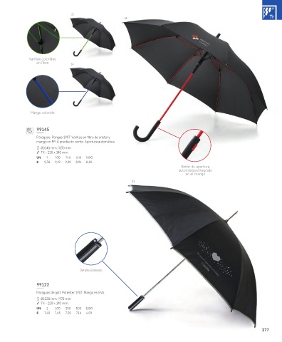 mango en PP. À prueba de viento. Apertura automática.