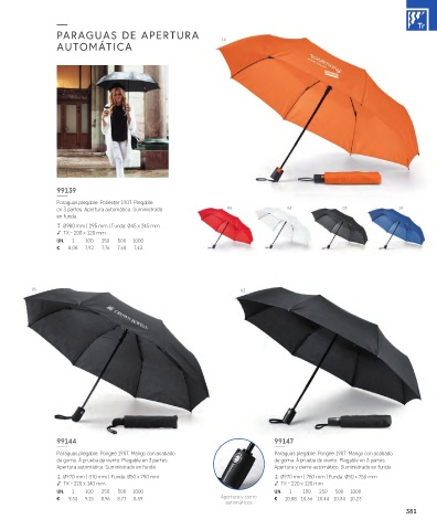Apertura automática. Suministrado en funda. Apertura y cierre automático. Suministrado en funda.