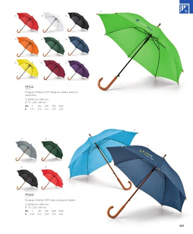 Paraguas. Poliéster 190T. Cabo y mango en madera.