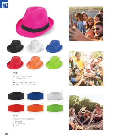 11 03 06 14 05 10 22 99427 Sombrero. PP. Cinta no incluida. Tamaño: 580 mm UN. € , , , , , 03 14 06 05 10 22 99428 Cinta para sombrero. 100% poliéster. 650 x 24 mm TR - 380 x 18 mm € , 386