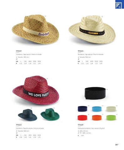 Sombrero. Paja de colores. Cinta no incluida. Cinta para sombrero. Non-woven: 80 g/m².