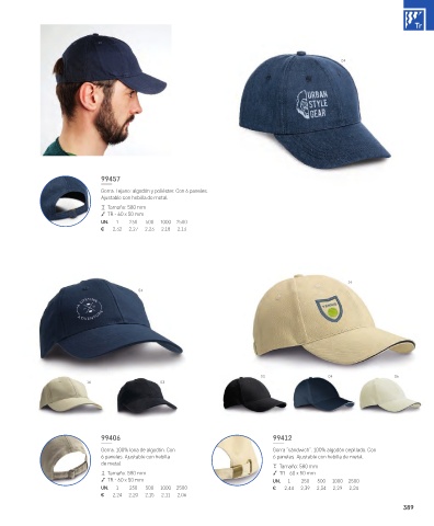 Gorra. Tejano: algodón y poliéster. Con 6 paneles.