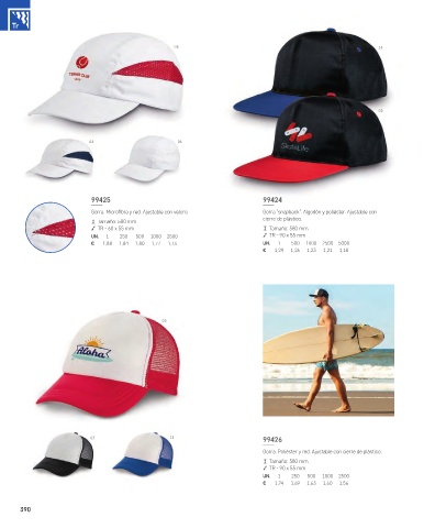 Gorra. Poliéster y red. Ajustable con cierre de plástico.