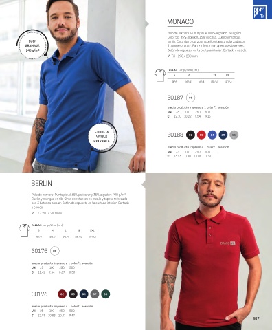 Polo de hombre. Punto piqué 65% poliéster y 35% algodón: 200 g/m².